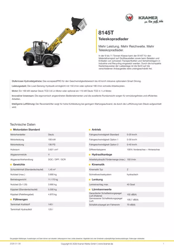In der 9 bis 11 Tonnen-Klasse kann der 8145T für den Materialtransport auf Großbaustellen sowie beim Beladen und Entladen von schweren Transportketten und Verkehrsträgern in Industrie und Recycling eingesetzt werden. Durch die kompakte Kastenbauweise der Ladeanlage ist die Sicht auf die verschiedenen Anbaugeräte stets uneingeschränkt frei.
