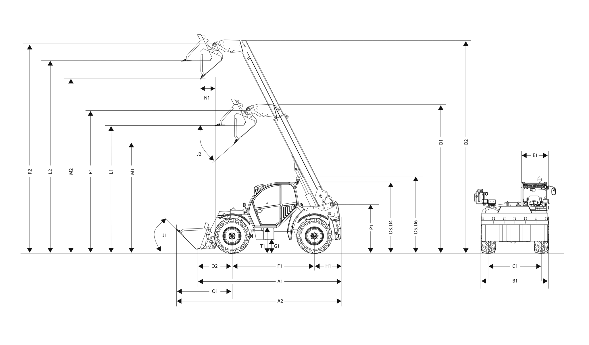 P1 | Hauteur totale palier du bras télescopique dans le châssis | 1.600 mm |