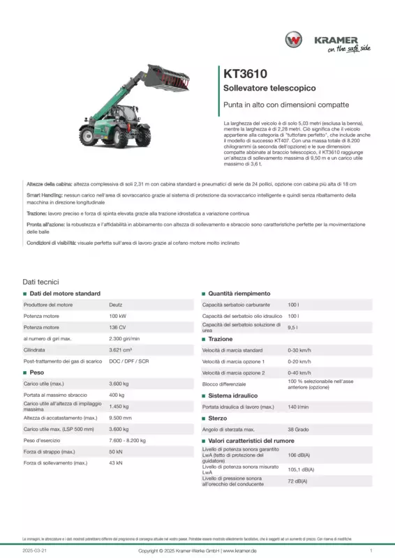 Brochure Sollevatori telescopici Kramer con altezza di sollevamento fino a 9,50 m KT356/KT307/KT357/KT407/KT3610/KT457/KT557/KT559