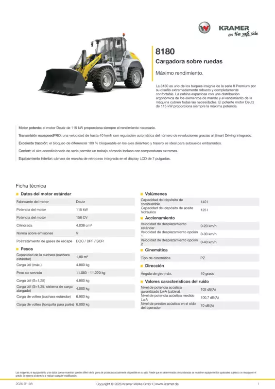 La 8180 es uno de los buques insignia de la serie 8 Premium por su diseño extremadamente robusto y completamente confortable. La cabina espaciosa con una distribución ergonómica de los elementos de mando y el rendimiento de la máquina cubren todas las necesidades. El potente motor Deutz de 115 kW proporciona siempre la máxima potencia.