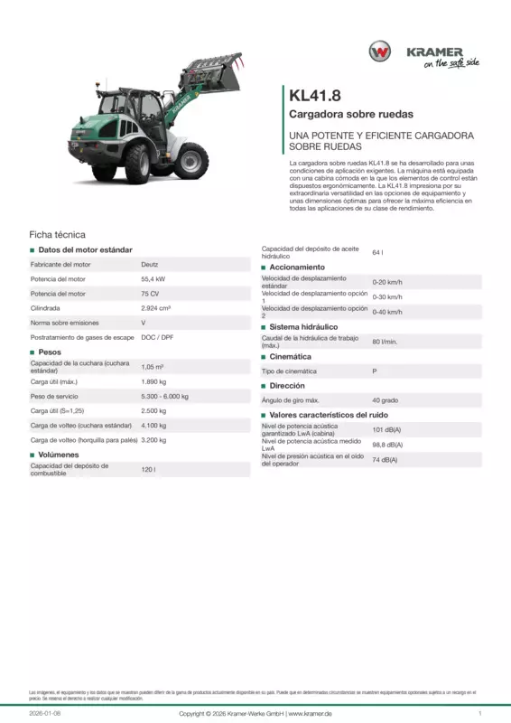 La cargadora sobre ruedas KL41.8 se ha desarrollado para unas condiciones de aplicación exigentes. La máquina está equipada con una cabina cómoda en la que los elementos de control están dispuestos ergonómicamente. La KL41.8 impresiona por su extraordinaria versatilidad en las opciones de equipamiento y unas dimensiones óptimas para ofrecer la máxima eficiencia en todas las aplicaciones de su clase de rendimiento.
