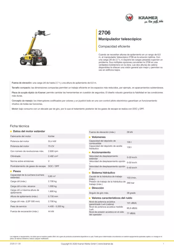 Cuando se necesitan alturas de apilamiento en un rango de 6,0 m, el manipulador telescópico 2706 es la solución óptima. Con una carga útil de 2,7 t, ni siquiera las cargas pesadas suponen un problema. Sus múltiples opciones convierten la 2706 en una verdadera todoterreno en la obra. Las dos alturas de cabina disponibles le ofrecen una visión general aún mejor y permiten su uso en edificios bajos.