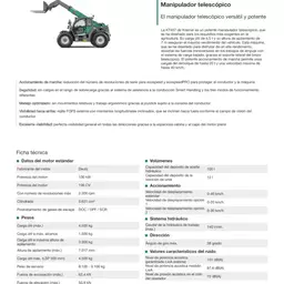 La KT457 de Kramer es un potente manipulador telescópico, que se ha diseñado para los requisitos más exigentes en la agricultura. Su carga útil de 4,5 t y su altura de apilamiento de 7 m aseguran el máximo rendimiento del vehículo. Esta máquina, que se ha diseñado para disfrutar de un alto rendimiento, absorbe las fuerzas transversales en los trabajos de empuje con el sistema de carga bajado, gracias al soporte lateral del brazo telescópico. El potente accionamiento de marcha permite unas cargas del remolque de hasta 20 t y una velocidad máxima de hasta 40 km/h.