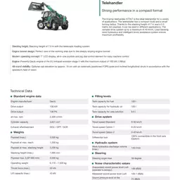 The Kramer telehandler KT357 is the ideal telehandler for a variety of applications. The telehandler has a compact build and a small turning radius. Thanks to the stacking height of 7 m and a 3.5 metric ton payload, it can be used in different applications. The variable drive system up to a maximum of 40 km/h, Load Sensing work hydraulics and intelligent driver assistance system ensure maximum profitability.