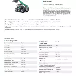 The top model KT559 has a lift capacity of 5.5 metric tons and a stacking height of 8.75 m. The 156 hp-strong Deutz engine with a torque of 609 Nm combined with a max. bucket volume of up to 4 m³ makes possible the highest handling outputs for applications in professional agriculture. The sensitive Load Sensing hydraulic pump produces up to 187 l/min, thus offering enough output for fast loading cycles. Even trailer loads of up to 20 metric tons are no problem for this telehandler.