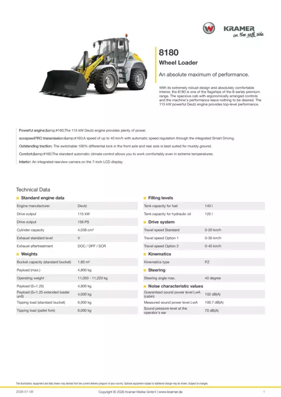 With its extremely robust design and absolutely comfortable interior, the 8180 is one of the flagships of the 8-series premium range. The spacious cab with ergonomically arranged controls and the machine's performance leave nothing to be desired. The 115 kW powerful Deutz engine provides top-level performance.