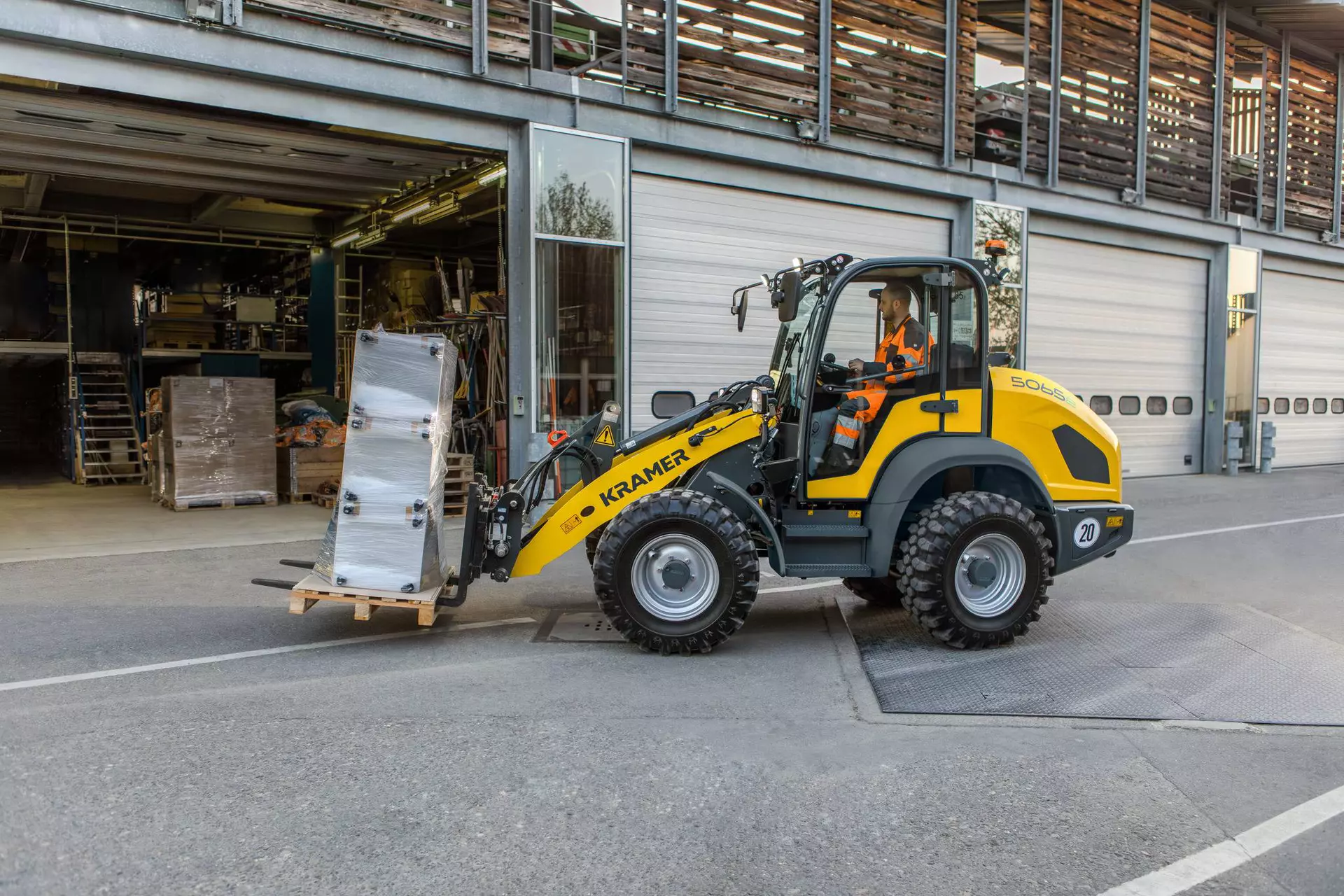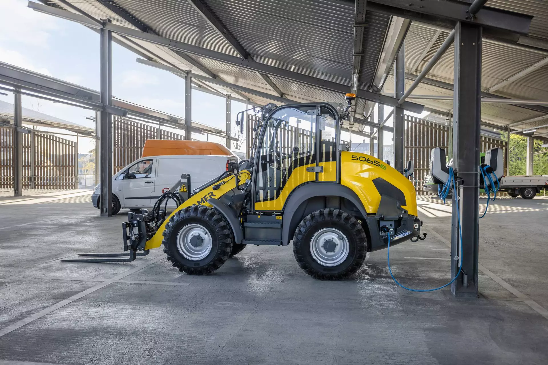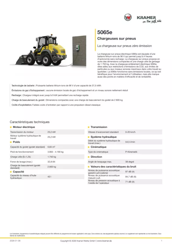 La chargeuse sur pneus électrique 5065e est équipée d’une batterie lithium-ions de 96 V qui permet jusqu’à 4 heures d’autonomie sans recharge. La chargeuse sur pneus propose en outre des dimensions compactes et une charge utile de gerbage de 1 750 kg. Avec la chargeuse entièrement électrique 5065e, dites adieu aux restrictions d'émissions de CO2, aux limites de particules ou aux niveaux sonores maximaux dans votre travail au quotidien. La 5065e fonctionne sans émissions locales, ce qui est bénéfique pour l’environnement et l’utilisateur, mais elle marque aussi des points en matière d’efficacité et de rentabilité.