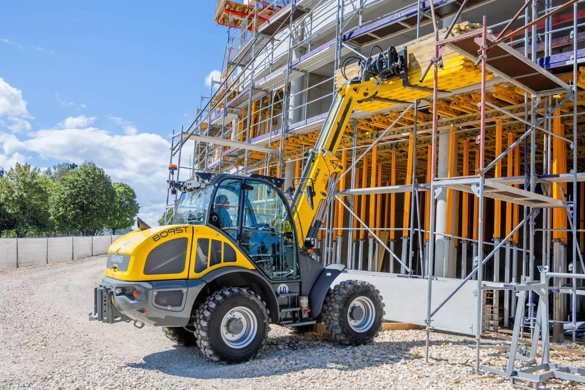 Il modello 8095T fa parte della serie premium 8 di Kramer e combina la massima sicurezza e il massimo comfort con un'ampia gamma di opzioni. Il telaio monoblocco del veicolo consente un'elevata maneggevolezza e un carico utile costante. La struttura a scatola stretta dell'unità di carico telescopica garantisce una visuale ottimale. Opzionalmente, la macchina è disponibile con motore Deutz da 74 kW e cambio ecospeed.