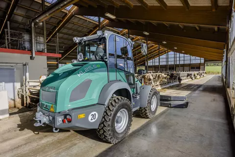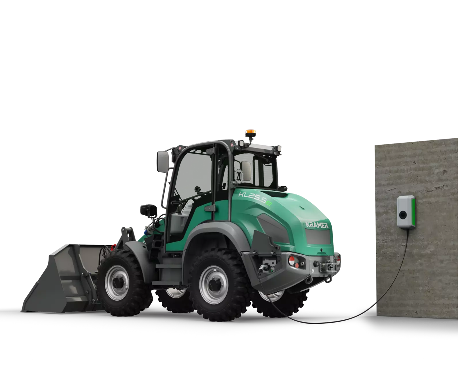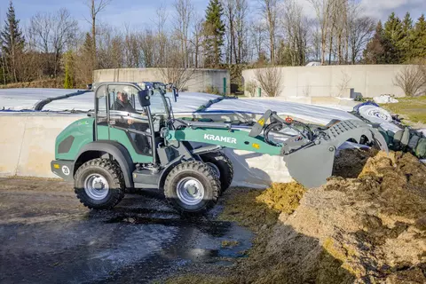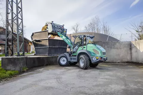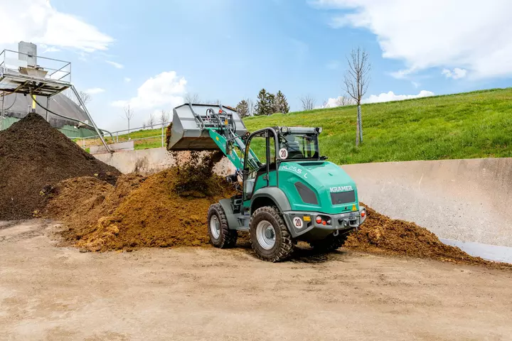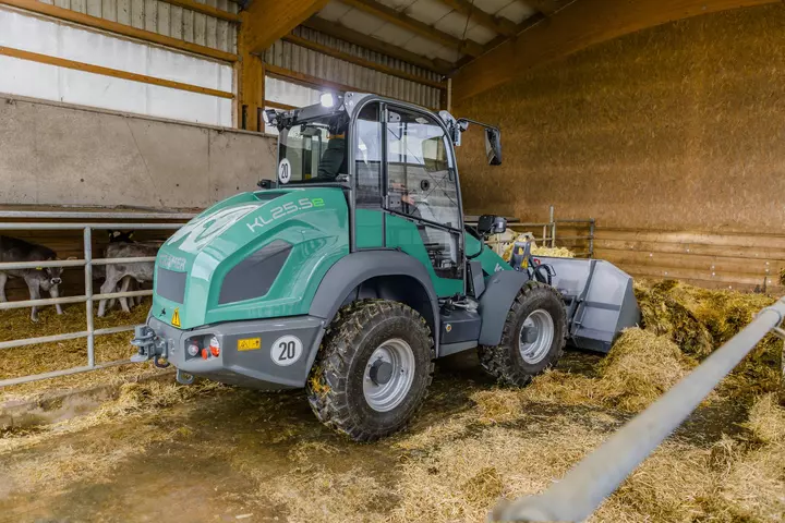 La pala gommata KL25.5e ad azionamento elettrico è dotata di una batteria agli ioni di litio da 96 volt, che consente un'autonomia fino a 4 ore senza ricarica intermedia. La pala gommata vanta oltre alle dimensioni compatte anche un carico ribaltabile di 2.800 chilogrammi. Con il modello KL25.5e completamente elettrico le emissioni di CO2, le particelle di fuliggine o il rumore non giocano più alcun ruolo durante il lavoro quotidiano. Il modello KL25.5e funziona localmente a zero emissioni, protegge le persone, gli animali e l'ambiente e guadagna punti anche in termini di efficienza ed economia.