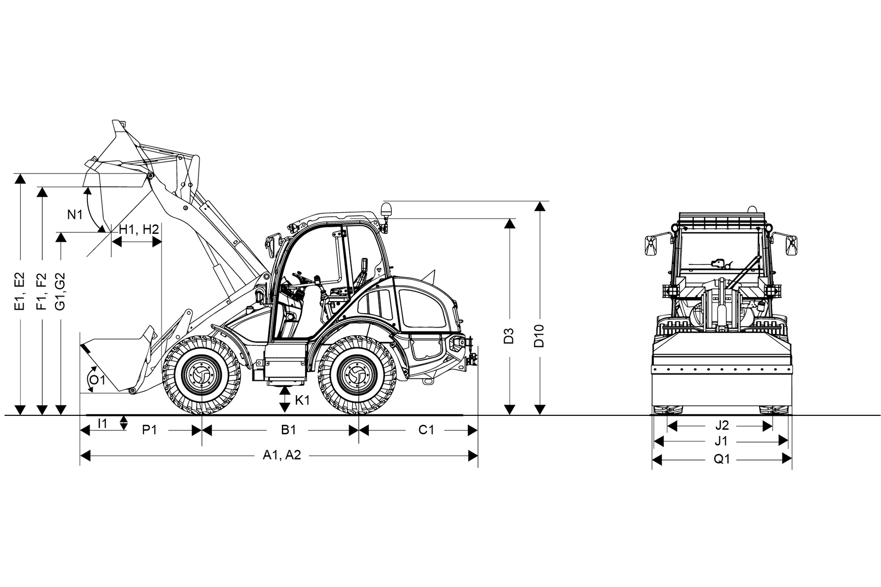 E1 | Altezza max. punto di rotazione della benna | 3.100 mm |