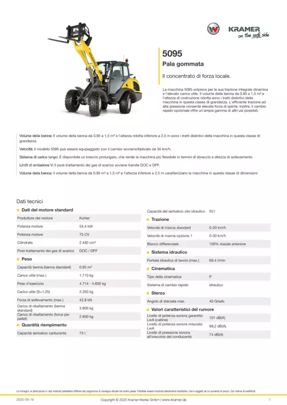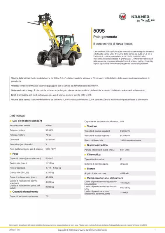 La macchina 5095 colpisce per la sua trazione integrale dinamica e l'elevato carico utile. Il volume della benna da 0,95 a 1,5 m³ e l’altezza di costruzione ridotta sono i tratti distintivi della macchina in questa classe di grandezza. L'efficiente trazione ad alta pressione consente elevate forze di spinta. Inoltre, il cambio rapido opzionale offre un'ampia gamma di altri usi possibili.
