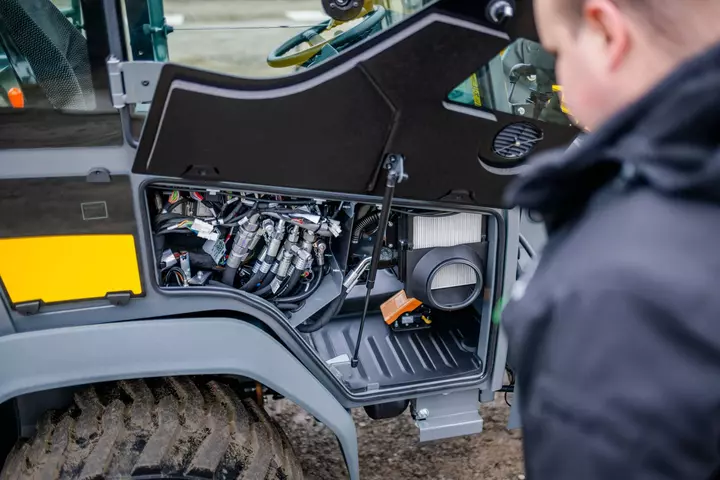 • Cabinevarianten: twee volwaardige cabines voor de wiellader, de comfortcabine (2,26 m hoog) en de lage cabine (2,11 m hoog), bieden uitstekend zicht rondom en ergonomisch geplaatste bedieningselementen voor een eenvoudige en intuïtieve bediening. De brede instap maakt comfortabel en snel in- en uitstappen mogelijk - ideaal voor het dagelijkse gebruik.