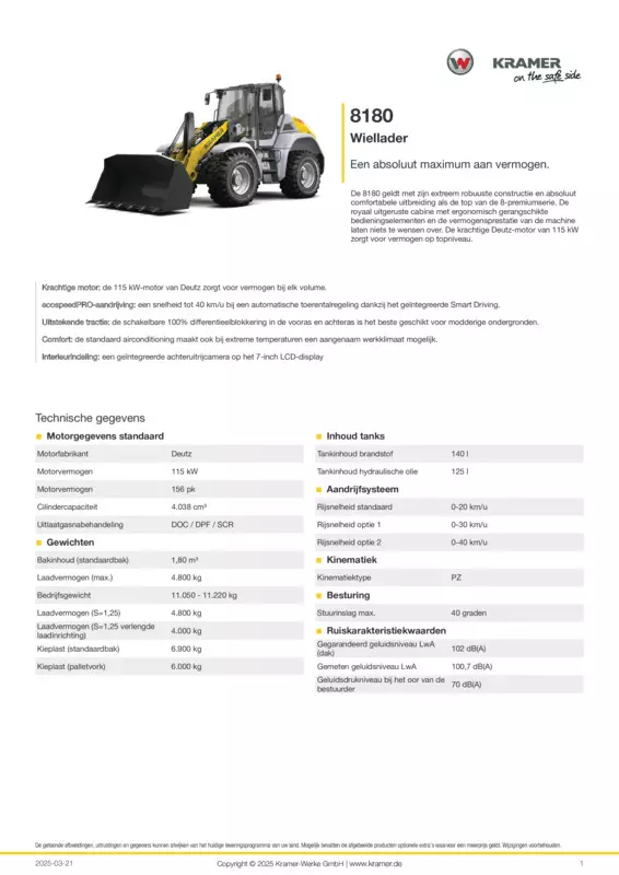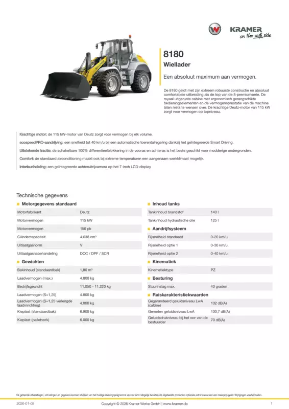 De 8180 geldt met zijn extreem robuuste constructie en absoluut comfortabele uitbreiding als de top van de 8-premiumserie. De royaal uitgeruste cabine met ergonomisch gerangschikte bedieningselementen en de vermogensprestatie van de machine laten niets te wensen over. De krachtige Deutz-motor van 115 kW zorgt voor vermogen op topniveau.