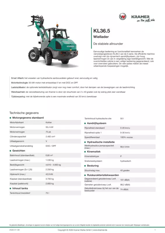 Eenvoudige bediening en functionaliteit kenmerken de vierwielaangedreven KL36.5 van de 5-serie. De efficiënte machine overtuigt met zijn dynamisch aandrijfsysteem, zijn hoog laadvermogen en zijn in vergelijking lage bedrijfsgewicht. Met de overzichtelijke cabine is een veilige bediening gegarandeerd, ook voor onervaren gebruikers. De vele opties maken de meest uiteenlopende toepassingen mogelijk.