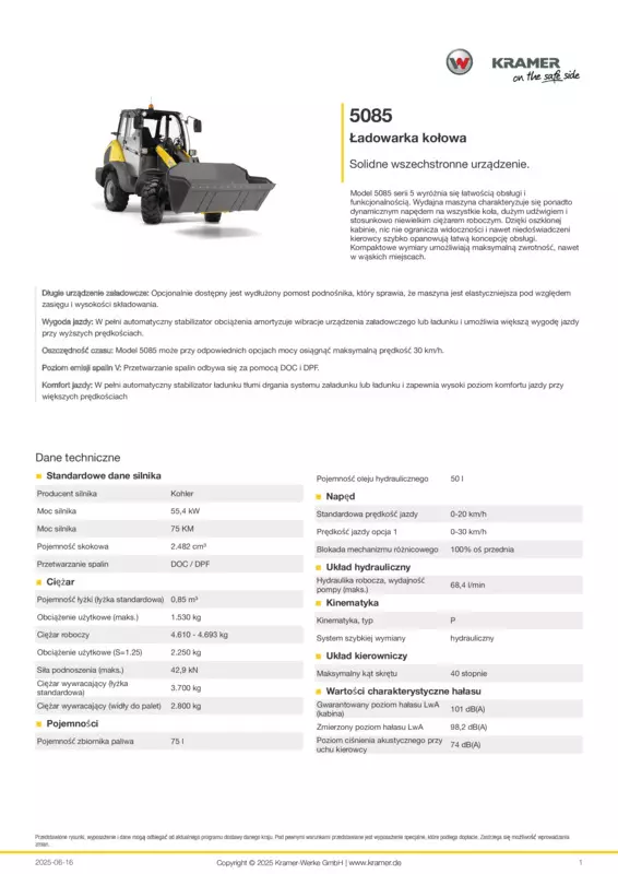 Model 5085 serii 5 wyróżnia się łatwością obsługi i funkcjonalnością. Wydajna maszyna charakteryzuje się ponadto dynamicznym napędem na wszystkie koła, dużym udźwigiem i stosunkowo niewielkim ciężarem roboczym. Dzięki oszklonej kabinie, nic nie ogranicza widoczności i nawet niedoświadczeni kierowcy szybko opanowują łatwą koncepcję obsługi. Kompaktowe wymiary umożliwiają maksymalną zwrotność, nawet w wąskich miejscach.