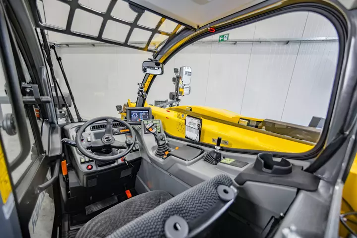 • Doskonała widoczność we wszystkich kierunkach dzięki dużym powierzchniom szklanym i wąskim słupkom kabiny