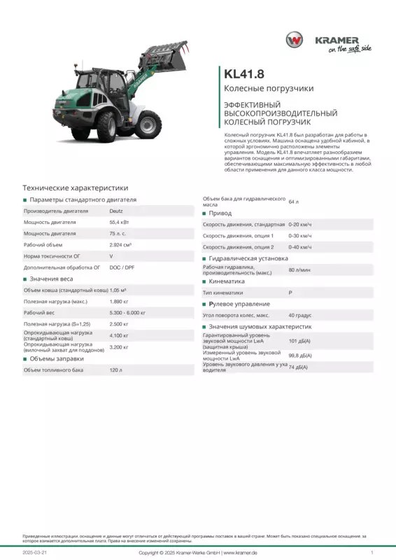 Колесный погрузчик KL41.8 был разработан для работы в сложных условиях. Машина оснащена удобной кабиной, в которой эргономично расположены элементы управления. Модель KL41.8 впечатляет разнообразием вариантов оснащения и оптимизированными габаритами, обеспечивающими максимальную эффективность в любой области применения для данного класса мощности.