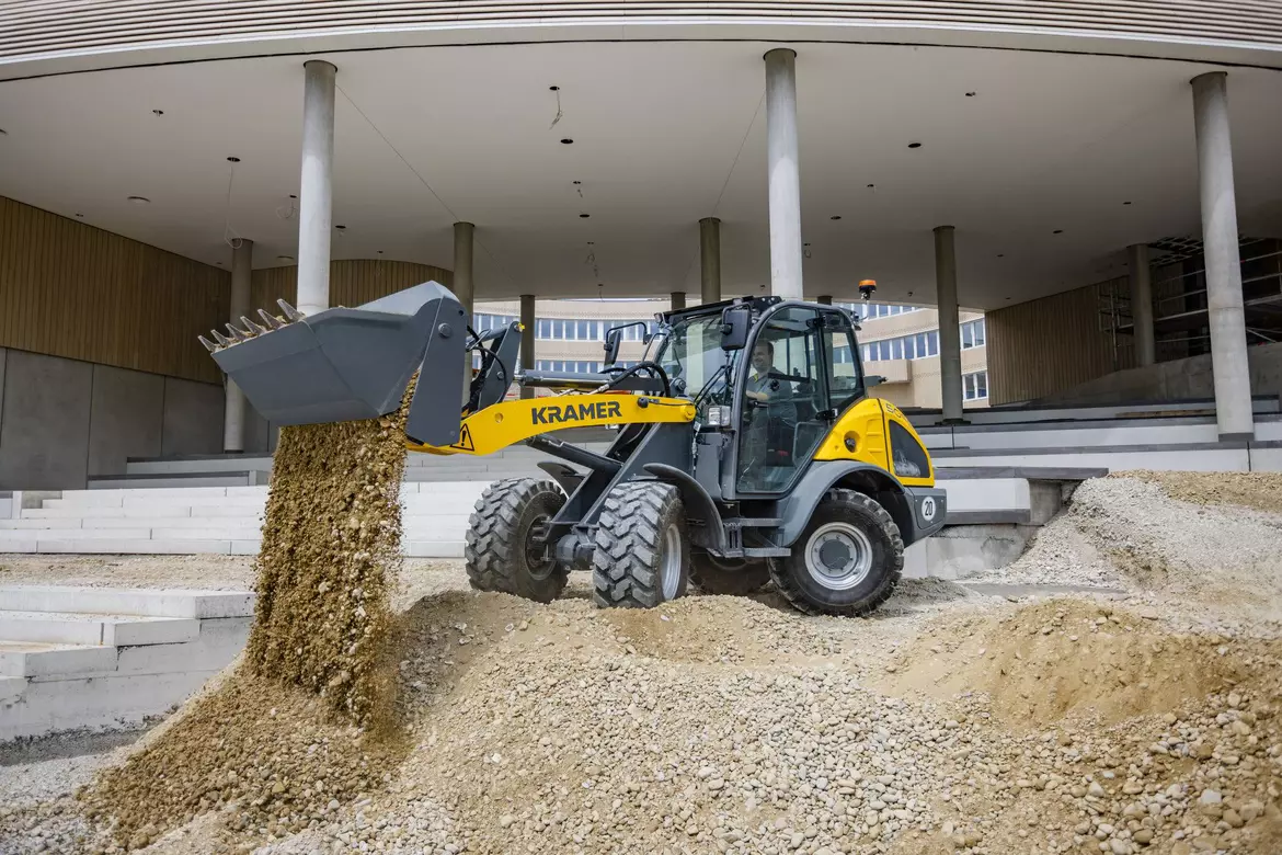 Колесные погрузчики для строительной отрасли впечатляют своими маневренностью, проходимостью и высокой эффективностью на стройплощадках. Благодаря специальной конструкции транспортного средства отсутствует смещение центра тяжести при поворотном движении. При управлении двигаются только колеса. Тем самым обеспечиваются максимальная полезная нагрузка и высокая устойчивость даже на крутых поворотах и неровной местности.