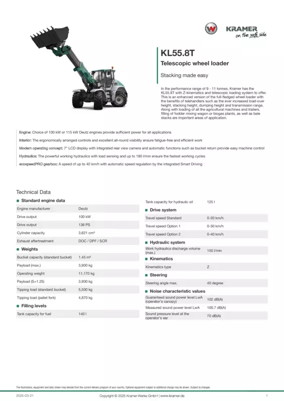 The brochure of the massive Kramer wheel and telescopic wheel loaders.